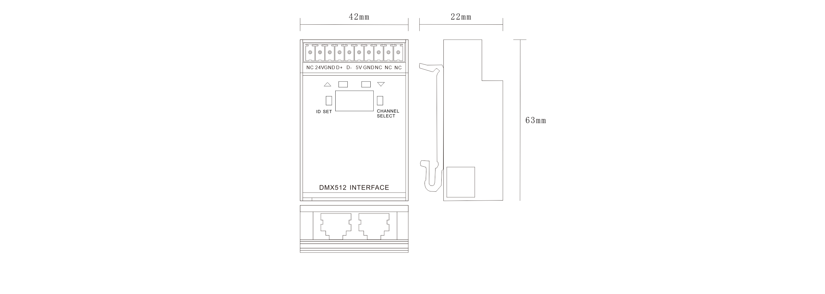 本產品通過VSU-Net總線控制DMX512信號的設備,可控制32個DMX通道,自帶場景功能,可查詢各個回路狀態;可給LED燈帶、RGB燈帶調光、調色;