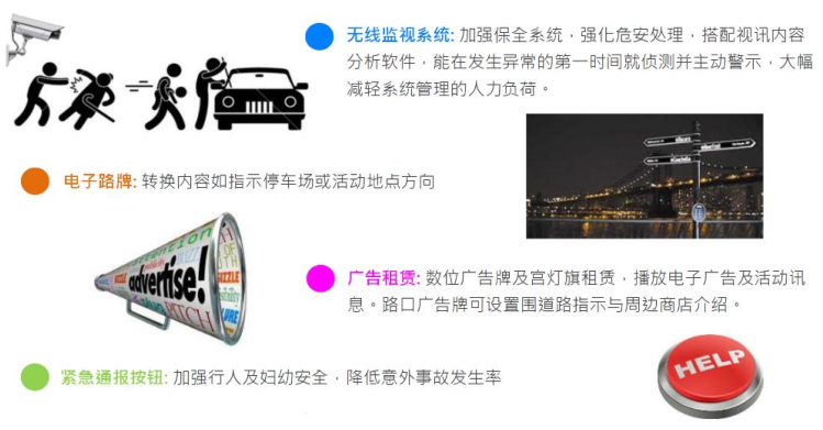 因下圖四個特點,智能路燈是城市物聯網的合適載體。