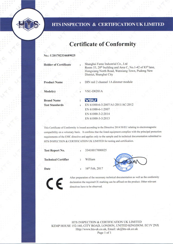 VSU智能照明有多項自主知識產品證書,所有產品都經過國際CE認證,符合國際電工標準。